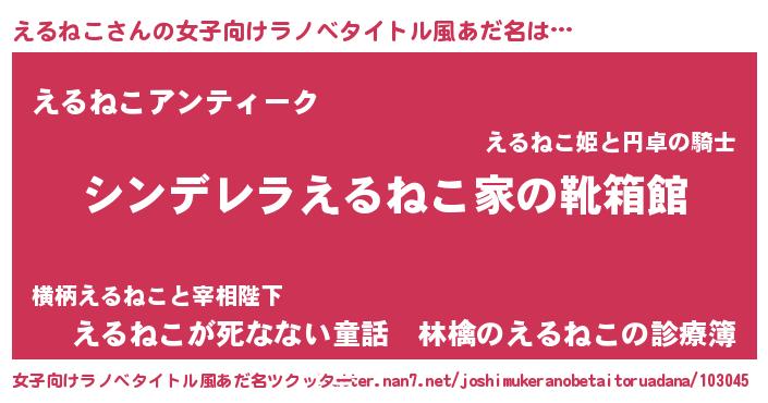 | 男性向けラノベタイトル風あだ名 | 『緋弾のエルネコ』『魔弾の王とえるねこ』 |