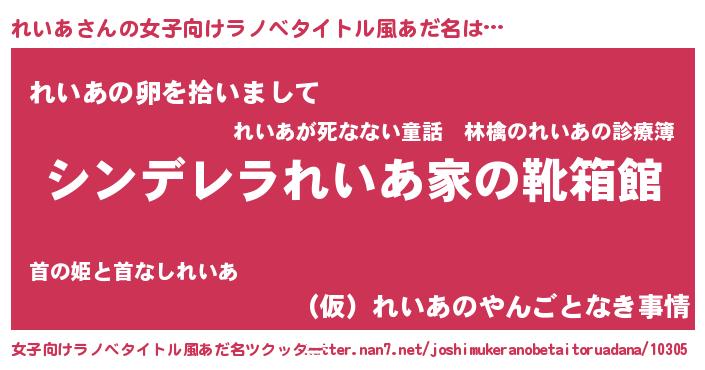 男性向けラノベタイトル風あだ名 | 『緋弾のレイア』『れいあの憂鬱』 |