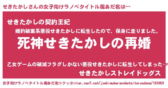 | ヘコむあだ名 | 『せきたかし(笑)』『せきにゅー』 |