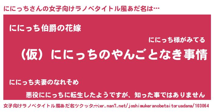 | ファンタジー風あだ名 | 『ニニフェル』『エターナルニニッチー』 |