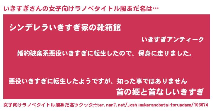 | 男性向けラノベタイトル風あだ名 | 『イキスギスレイヤー』 |