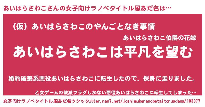 | 男性向けラノベタイトル風あだ名 | 『ダンジョンにあいはらさわこを求めるのは間違っているだろうか』 |