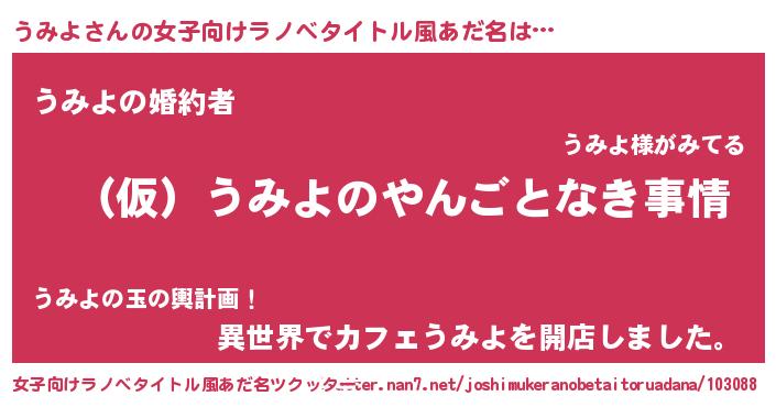 | 男性向けラノベタイトル風あだ名 | 『うみよの憂鬱』 |