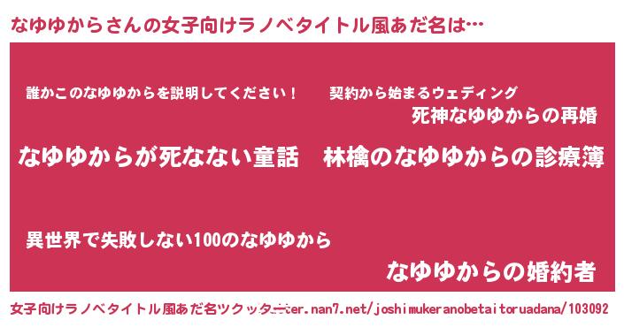 | 意味不明あだ名 | 『住所不定無職なゆゆから(81歳)』 |