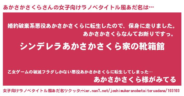 | 胡散臭い通販商品みたいなあだ名 | 『信頼と実績のサプリメント…その名も「あかさかさくら」』 |