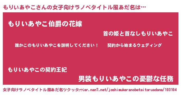 | 男性向けラノベタイトル風あだ名 | 『モリイアヤコアートオンライン』 |