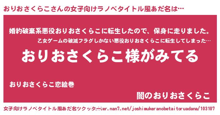 | 男性向けラノベタイトル風あだ名 | 『おりおさくらこの嫁は女の子じゃないと思った?』 |