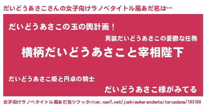 | 肩書あだ名 | 『だいどうあさこプロデューサー』 |