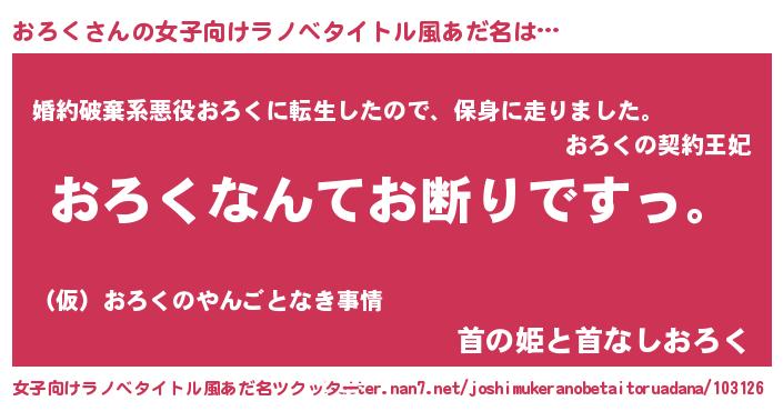 | 男性向けラノベタイトル風あだ名 | 『魔法科高校のおろく』『おろくの憂鬱』 |
