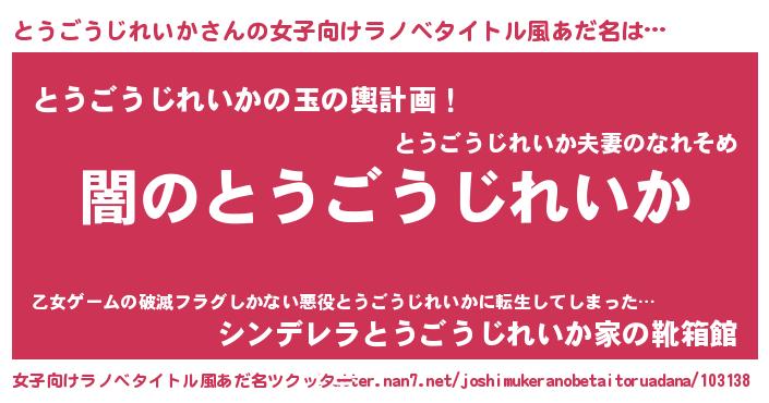 | ヘコむあだ名 | 『とうごうじれいか(笑)』『とうにー』 |