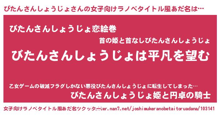 | 男性向けラノベタイトル風あだ名 | 『ダンジョンにびたんさんしょうじょを求めるのは間違っているだろうか』 |