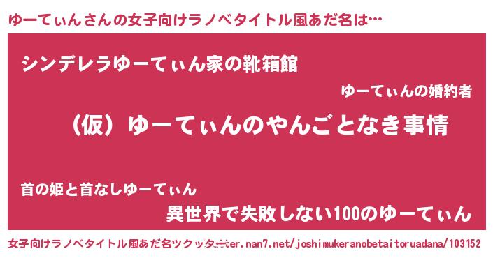 | 男性向けラノベタイトル風あだ名 | 『ゆーてぃんの憂鬱』『緋弾のユーティン』 |