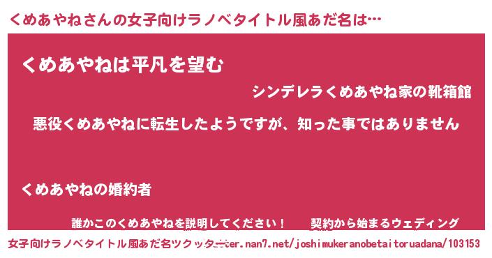 | 意味不明あだ名 | 『住所不定無職くめあやね(47歳)』 |