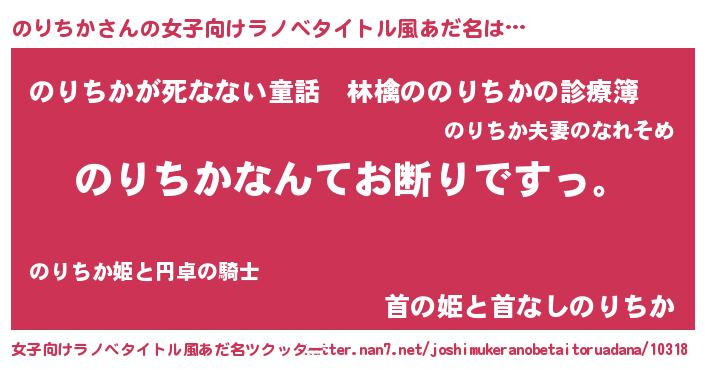 | 男性向けラノベタイトル風あだ名 | 『魔法科高校ののりちか』 |