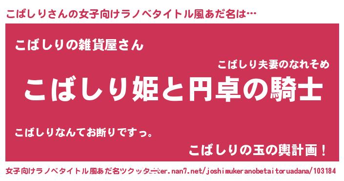 | 胡散臭い通販商品みたいなあだ名 | 『モテモテ間違いなしブレスレット…その名も「こばしり」』 |