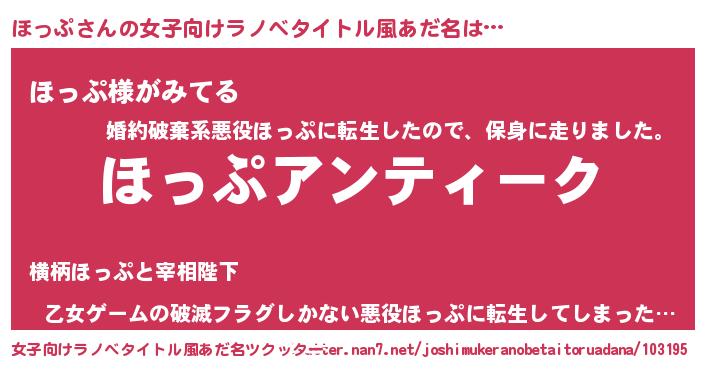 | 意味不明あだ名 | 『自称ほっぷ』『とにかく怪しいほっぷ』 |