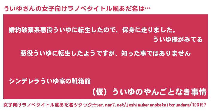 | 男性向けラノベタイトル風あだ名 | 『この素晴らしい世界にういゆを!』 |