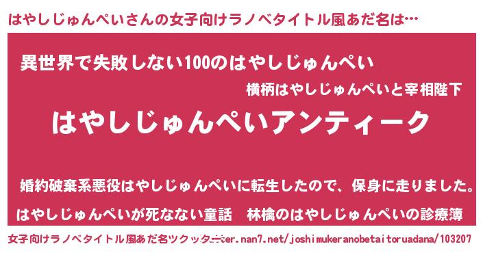 | 意味不明あだ名 | 『自称はやしじゅんぺい』 |