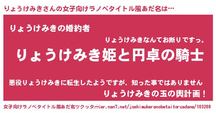| 男性向けラノベタイトル風あだ名 | 『リョウケミキアートオンライン』 |