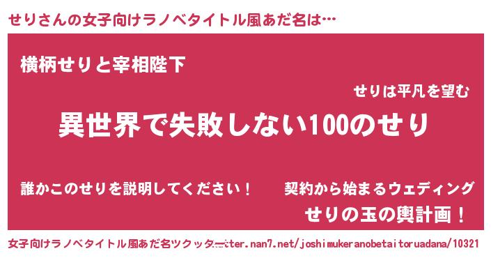 | 男性向けラノベタイトル風あだ名 | 『せりという概念が存在しない退屈な世界 』 |