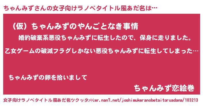 | 意味不明あだ名 | 『住所不定無職ちゃんみず(79歳)』 |