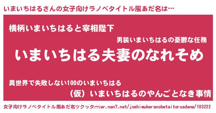 | ヘコむあだ名 | 『いまっふぃ~』『いまいちはる(笑)』 |