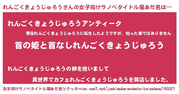 | ヘコむあだ名 | 『れんごくきょうじゅろう(小並感)』 |