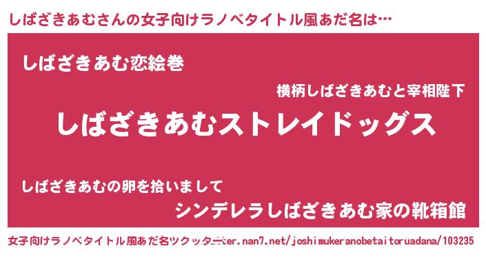 | 男性向けラノベタイトル風あだ名 | 『Re:しばざきあむから始める異世界生活』 |