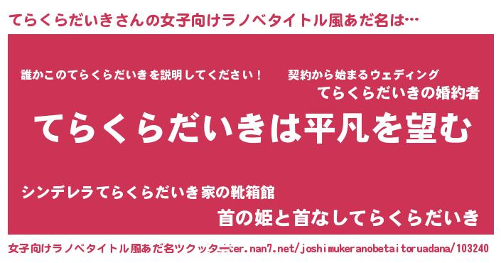 | 料理風あだ名 | 『てらくらだいきの豆乳スープ』 |