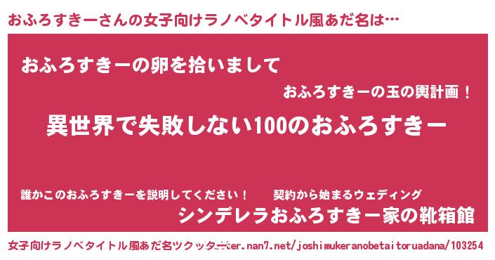 | 胡散臭い通販商品みたいなあだ名 | 『絶対に幸福をもたらす水素水…その名も「おふろすきー」』 |