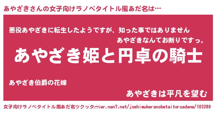 | 胡散臭い通販商品みたいなあだ名 | 『モテモテ間違いなし水晶球…その名も「あやざき」』 |