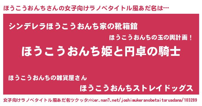 | 男性向けラノベタイトル風あだ名 | 『ホウコウオンチアートオンライン』 |