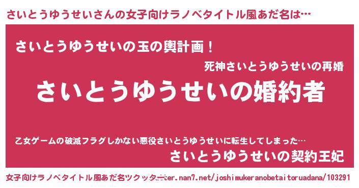 | ファンタジー風あだ名 | 『エターナルサイトウユウセイー』 |