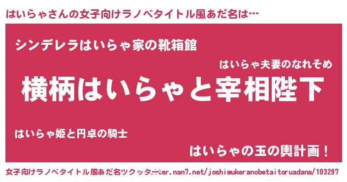 | 男性向けラノベタイトル風あだ名 | 『はいらゃに滅ぼされるだけの簡単なお仕事です』 |