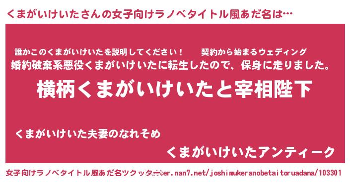 | ヘコむあだ名 | 『くまにー』『豆乳』『くまっぺ』 |