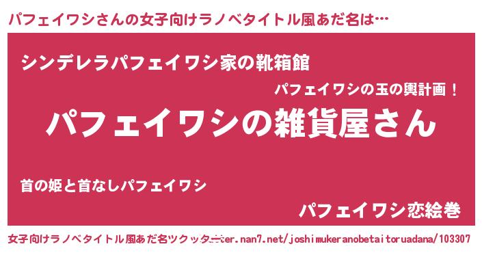 | 意味不明あだ名 | 『パフェイワシフォーエバー』 |