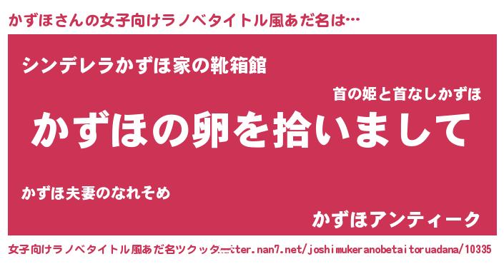 | 男性向けラノベタイトル風あだ名 | 『ダンジョンにかずほを求めるのは間違っているだろうか』 |