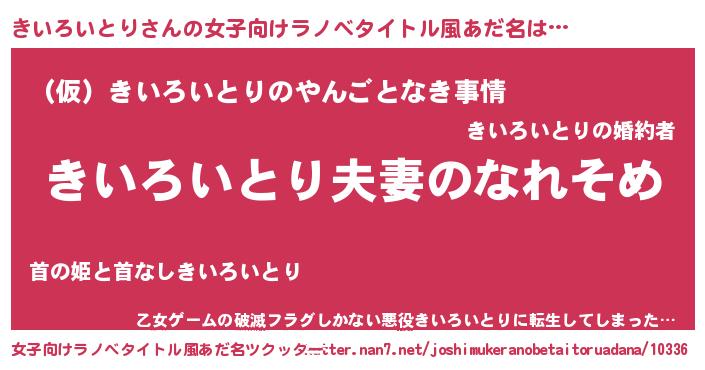 | 男性向けラノベタイトル風あだ名 | 『おまえをオタクにしてやるから、俺をきいろいとりにしてくれ! 』 |
