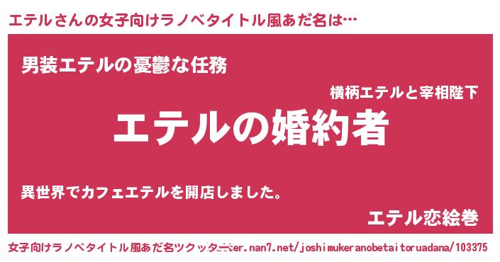 | 胡散臭い通販商品みたいなあだ名 | 『運命の人と巡り会える高級そうな皿…その名も「エテル」』 |