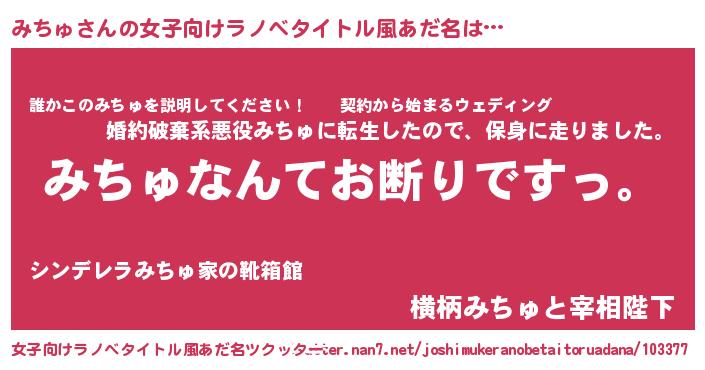 | 男性向けラノベタイトル風あだ名 | 『魔法科高校のみちゅ』『緋弾のミチュ』 |