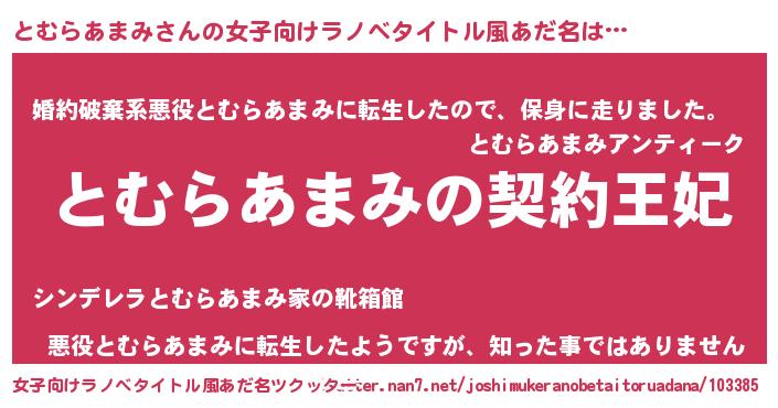 | 男性向けラノベタイトル風あだ名 | 『誰もが恐れるあのとむらあまみが、ぼくの専属メイドになるようです。』 |