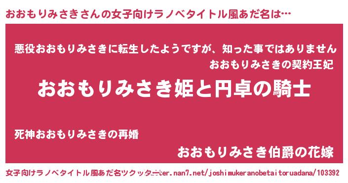 | 男性向けラノベタイトル風あだ名 | 『オオモリミサキアートオンライン』 |