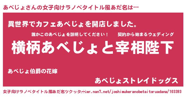 | 男性向けラノベタイトル風あだ名 | 『あべじょに滅ぼされるだけの簡単なお仕事です』 |