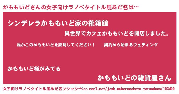 | 男性向けラノベタイトル風あだ名 | 『カモモイドアートオンライン』 |