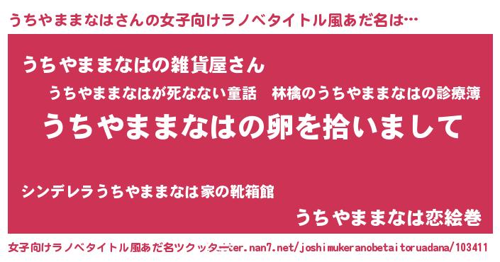 | 男性向けラノベタイトル風あだ名 | 『ダンジョンにうちやままなはを求めるのは間違っているだろうか』 |