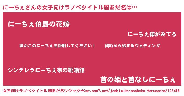| ファンタジー風あだ名 | 『ニーフェル』『エターナルニーチェー』 |