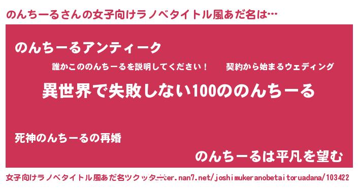 | 男性向けラノベタイトル風あだ名 | 『のんちーるという概念が存在しない退屈な世界 』 |