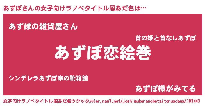 | 意味不明あだ名 | 『眠気覚ましガムあずぽ味』 |