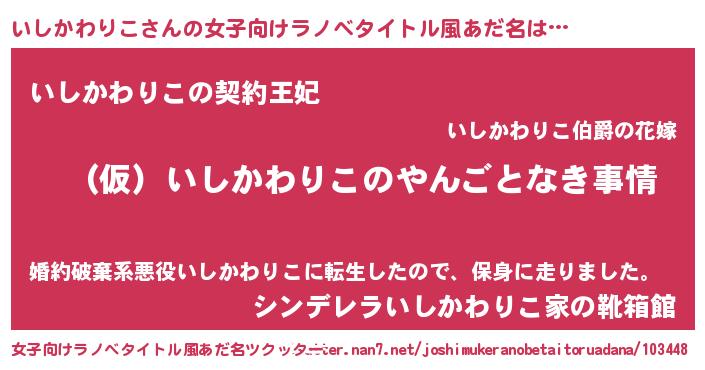 | ファンタジー風あだ名 | 『イシフェル』『イシディッシュ』 |