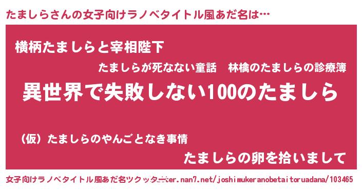 | 胡散臭い通販商品みたいなあだ名 | 『絶対に幸福をもたらす健康食品…その名も「たましら」』 |